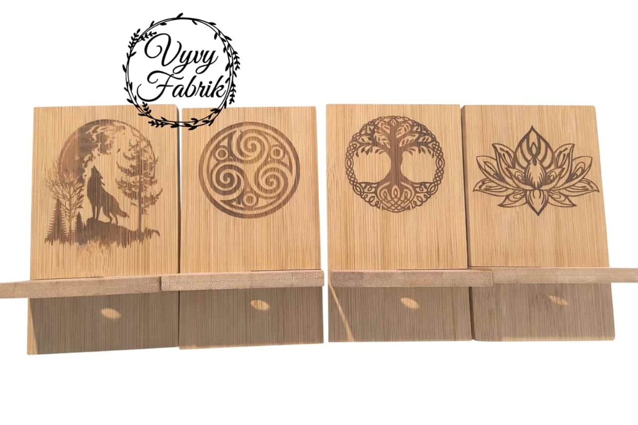 Support de téléphone en bambou gravé au laser – Motif au choix